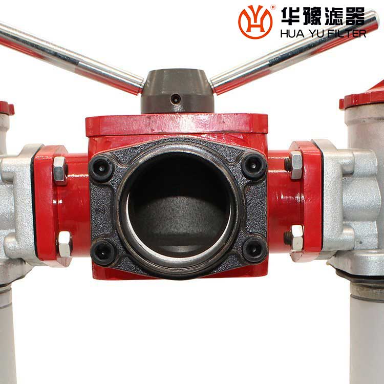 它的工作特點(diǎn)是當(dāng)一只過濾器濾芯堵塞需要更換時,不需要停止主機(jī)工作,只要打開壓力平衡并轉(zhuǎn)動換向閥,另一只過濾器即可參加工作,然后更換已堵塞的濾芯。